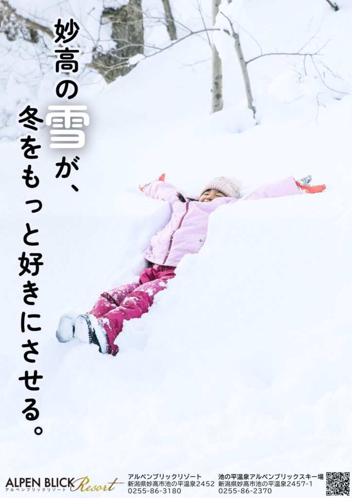――実は今シーズン、アルペンブリックリゾートのメイン広告が変わったと聞いています。スノーエンジェルを作る少女の広告が今シーズンのメインビジュアルになるとか。