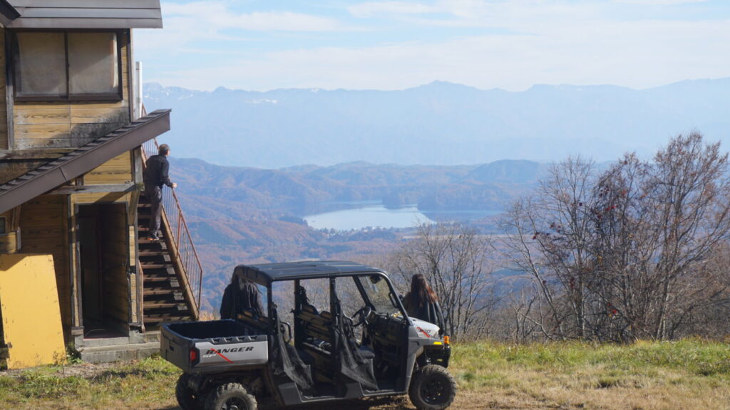 オフシーズンのスキー場内を、ガイド付きバギーに乗って約15分かけて絶景ポイントまでゆったりとクルージング。